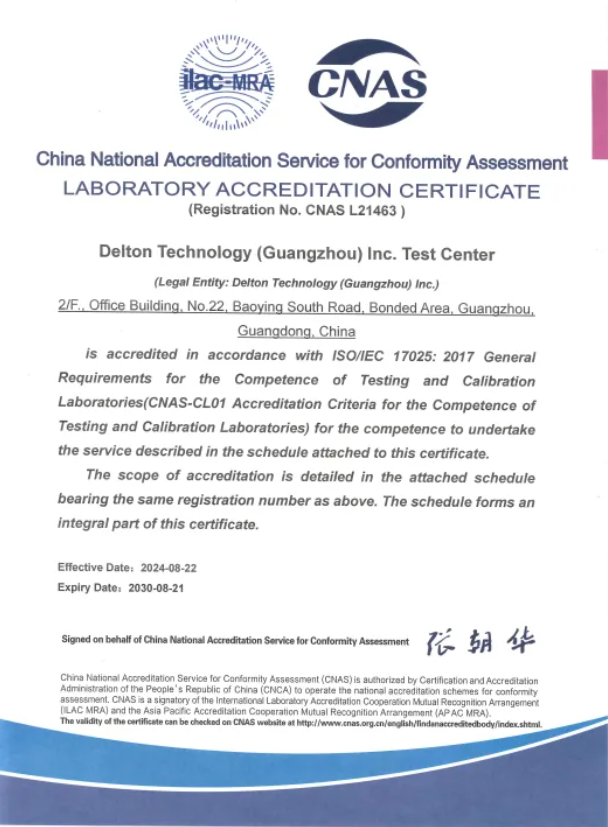 多宝手机注册检测中心(以下简称“广合科技检测中心”)顺利通过中国合格评定国家认可委员会(“China National Accreditation Service for Conformity Assessment”, CNAS)的认可,成功获得CNAS认可标识和认可证书(注册号:CNAS L21463),标志着我司在检测技术能力和管理水平上迈上了新的台阶。